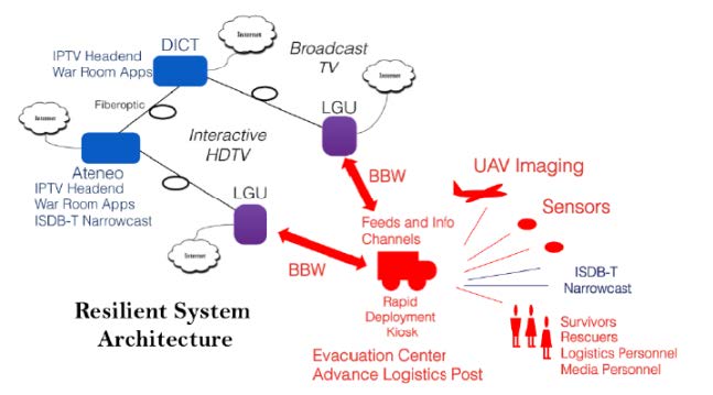 The project envisaged the design of a BBW (broadband wireless) network that is very resilient and rapidly deployable for quick end to end information flow from affected areas right up to the war room. The system has to be able to carry effective broadband content, to prepare communities, especially persons with disabilities (PWDs), during the critical pre-disaster planning and preparation periods, and for effective response immediately upon the onset of disasters and over the long term recovery effort.