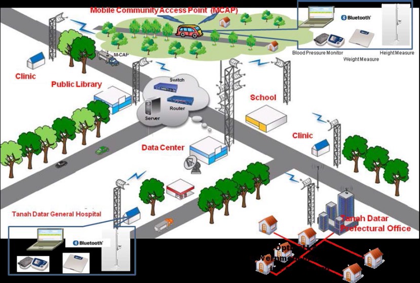 Throughout the project, clinics, schools and governmental agencies in Tanah Datar Regency were networked and connected to each other over the Wi-Fi system and optical LAN. As a result of the implementation of the applications, improvement of administrative services were observed and recognized among residents and local government agencies.